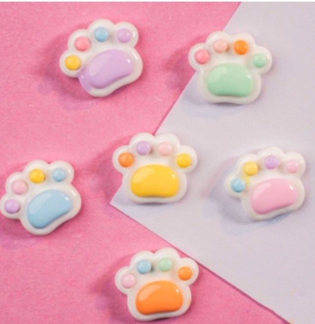 肉球4色セット @22円 海外から仕入れた商品です 検品を行っていますが、デザインのズレ、汚れのある商品が含まれる事もあります 裏面の多少の汚れ等は、B品との認識をしておりません ご理解いただける方の購入お願いします 使用している画像は、仕入先に許可を得ています。 #デコパーツ